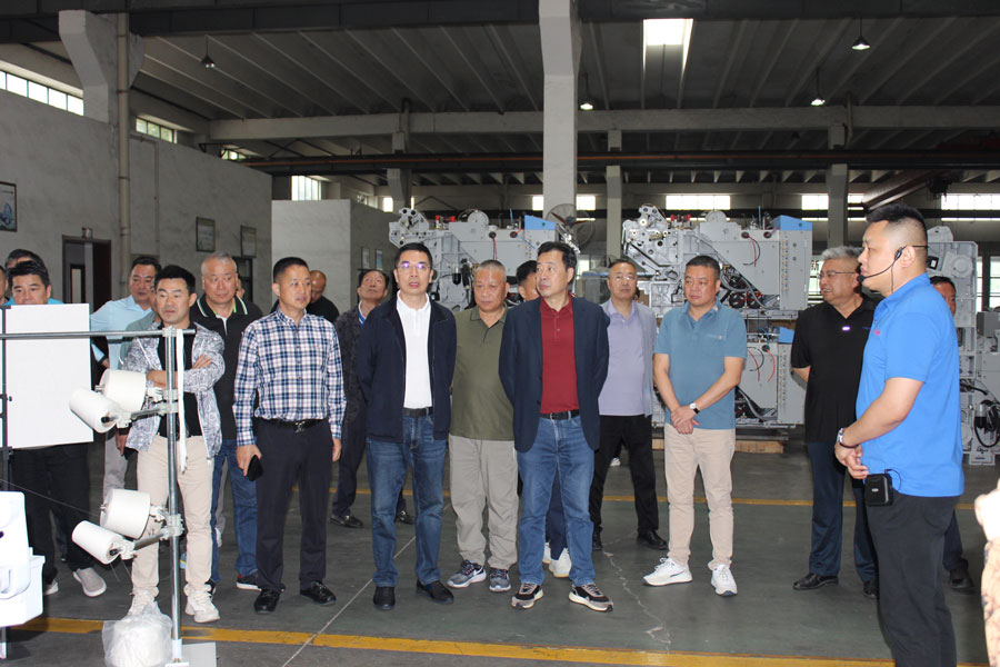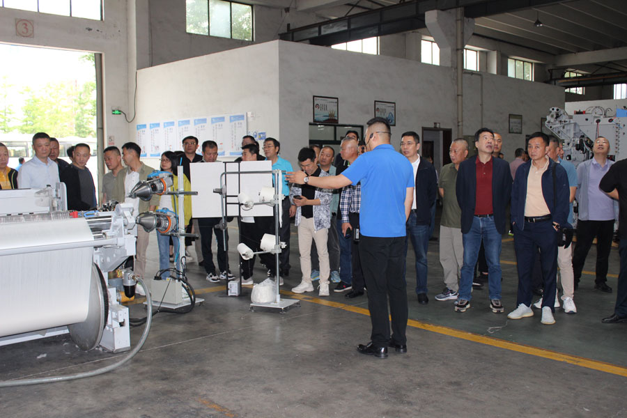 同時,來賓詳細參觀了天一紅旗紡機產品,尤其是自主創新研發的產品HQF001共軛凸輪打緯噴氣織機、噴水織機給予了高度認可。在李總的詳細講解下,商會一行深入生產一線,了解天一紅旗產品管控及質量標準,對精準管理和高效產能給予成分肯定。