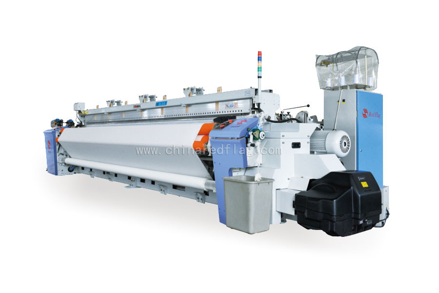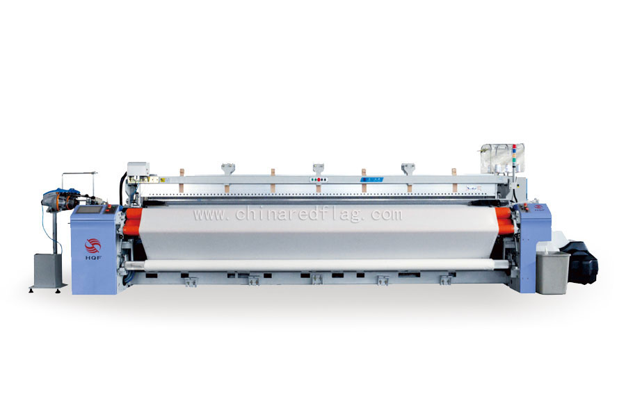 天一紅旗一直在對噴氣織機寬幅織造方面進行探索與研究,460織機采用左右雙織軸,變氣壓,變間距的副噴接力引緯方式,力求在較高入緯率下實現(xiàn)寬幅高效引緯。
